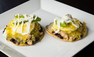 tortillas; Huevos Rancheros, a crispy tortilla topped with two eggs,